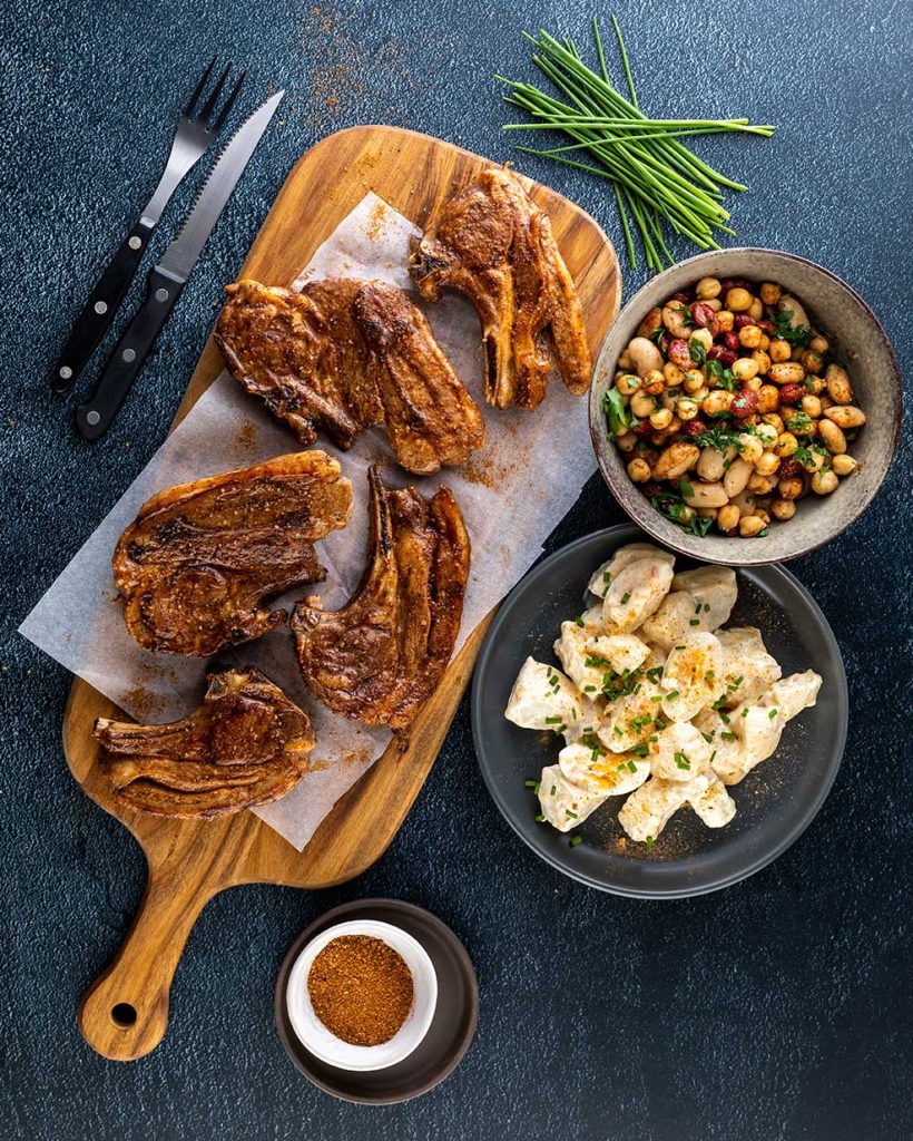 Lamb Chops with Potato Salad & Sweet & Sour Beans