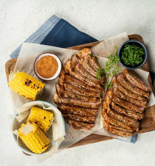 Grilled Sirloin Steak, Prawns in Creamy Lemon Sauce and Crispy Sweet Potato Sticks 5 Time: 20 minutes