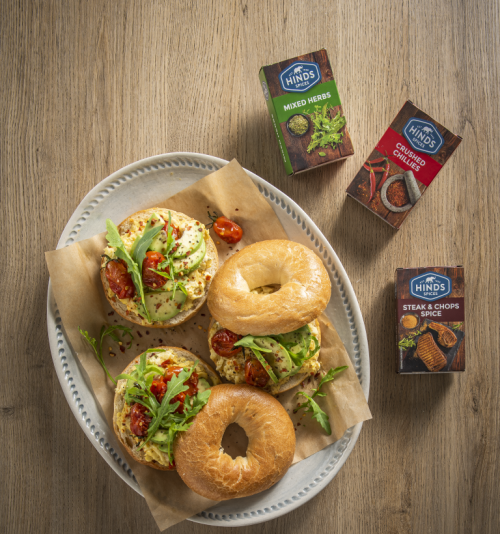 Vegetarian breakfast, breakfast bun, meatless breakfast, hinds spices steak and chops, hinds spices crushed chillies, hinds spices mixed herbs, hinds spices pepper,