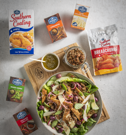 Chicken salad, crunchy salad, salad topping, Hinds Spices Pure Ground Ginger, Hinds Spices Cinnamon, Hinds Southern Coating Breadcrumbs, Hinds Spices Mixed Herbs,