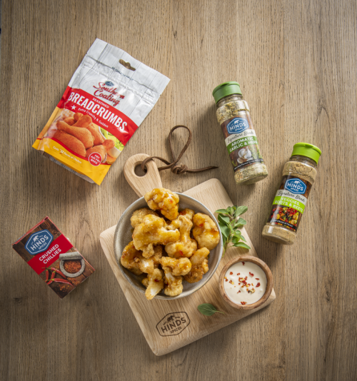 Vegetarian snacks, veggie meal, crumbed vegetables, coated vegetables, fried vegetables, crumbed cauliflower, coated cauliflower, fried cauliflower, Hinds southern coating breadcrumbs, hinds spices veggies roots and beets, hinds spices aromatic garlic and herb, hinds spices paprika, hinds spices crushed chillies,