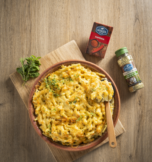 Pasta dish, cheesy pasta, baked pasta, hinds spices paprika, hinds spices aromatic garlic and herb, macaroni,